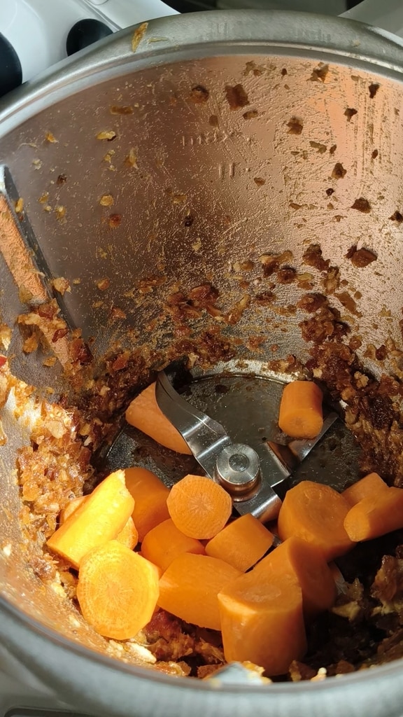 Ajoutez les carottes en morceaux : 10 sec. vit. 7.