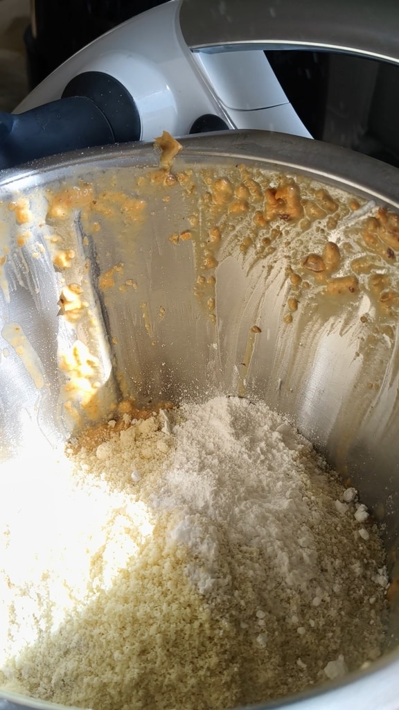 Ajoutez la farine d’avoine, la farine d’amandes, la levure : 20 sec. vit. 4.