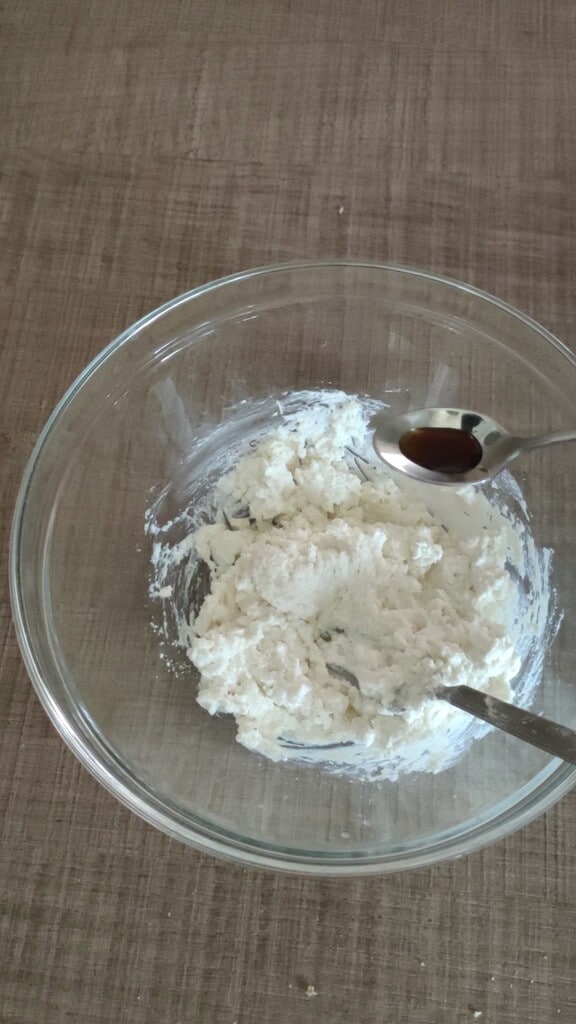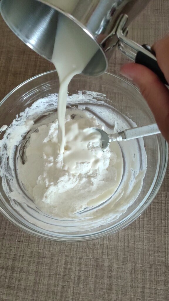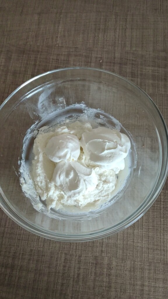 – Monter 180 g de crème bien froide et l’incorporer à la ricotta.
