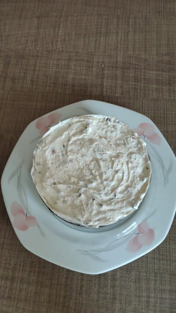 – Reprendre la base du frigo et verser la crème cheesecake dans l’anneau.