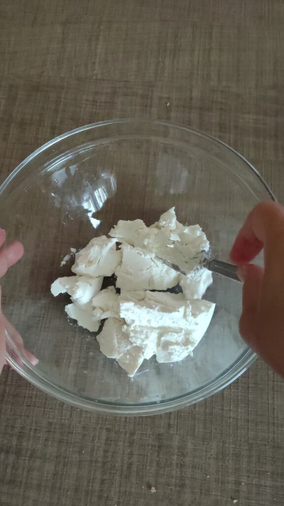 Ecraser avec une fourchette la ricotta placée dans un saladier