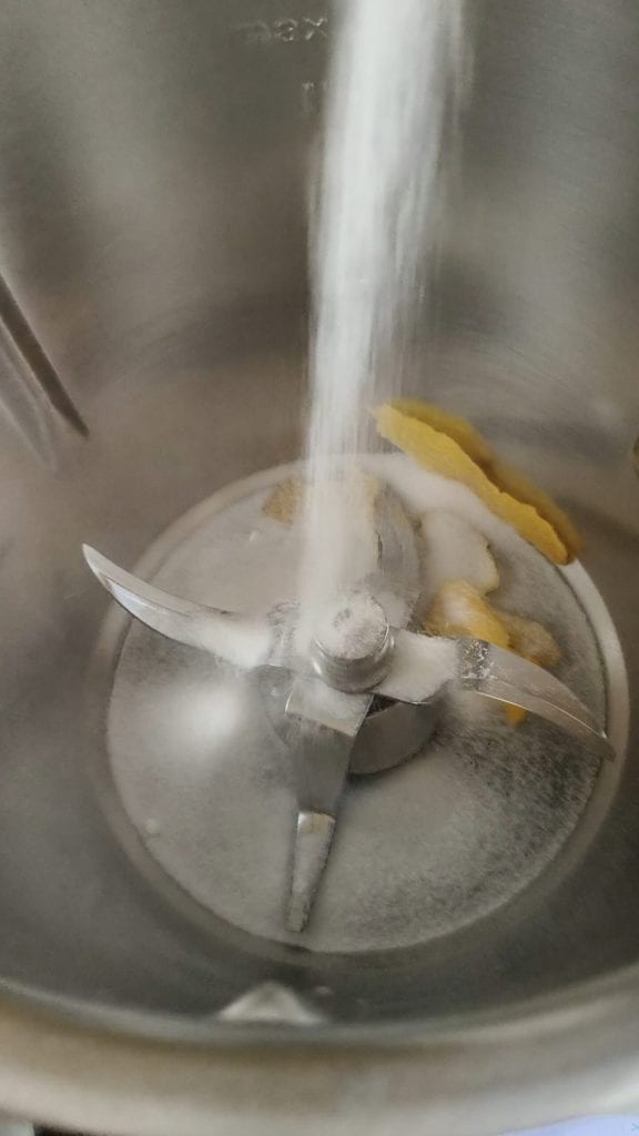 Placez dans le bol le sucre et le zeste de citron : 10 sec. vitesse 10.