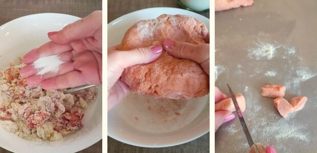 Pourquoi ai-je utilisé le concentré de tomate, vous vous êtes demandé ? Simplement pour donner un peu de couleur et un goût différent aux habituels gnocchis de pommes de terre