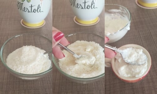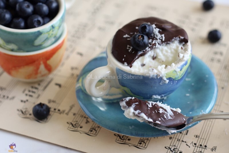 Étant donné les températures vraiment élevées de cet été ensoleillé, l’envie de préparer des gâteaux et des biscuits m’est complètement passée, mais vous savez que j’adore cuisiner, alors j’ai pensé à un goûter différent des habituels, frais et rapide.. prêt en seulement 10 minutes à base de yaourt, coco râpé et chocolat. Il n’y a pas de sucres ajoutés sauf dans le chocolat, mais si vous souhaitez le rendre plus doux, vous pouvez ajouter une cuillère à café de miel.