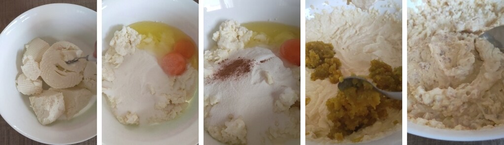 – Mettre la ricotta dans un bol, la sucrer, ajouter les œufs et tous les autres ingrédients prévus. (vous pouvez également tamiser la ricotta avant d’ajouter le sucre)