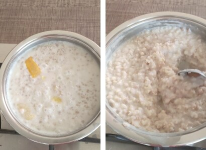– Porter à ébullition tous les ingrédients en remuant souvent jusqu’à ce que le lait soit absorbé.
