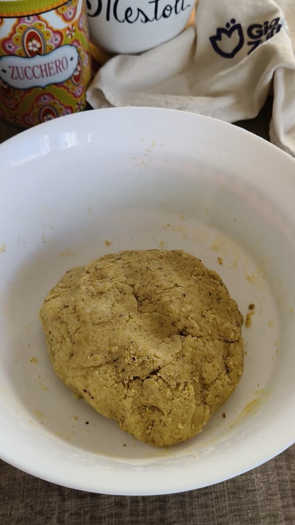 Ne pas trop travailler les ingrédients pour être sûr que notre pâte sablée à la pistache sera bien élastique.