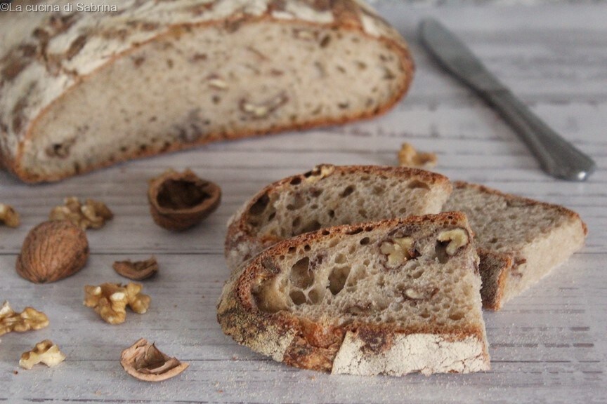 Faire du pain, comme je le dis toujours, est un art noble qui procure vraiment beaucoup de satisfaction. En l’occurrence, la pâte du pain aux noix est facile à gérer, c’est un pain qui se fait dans la journée ou avec un repos au frigo.