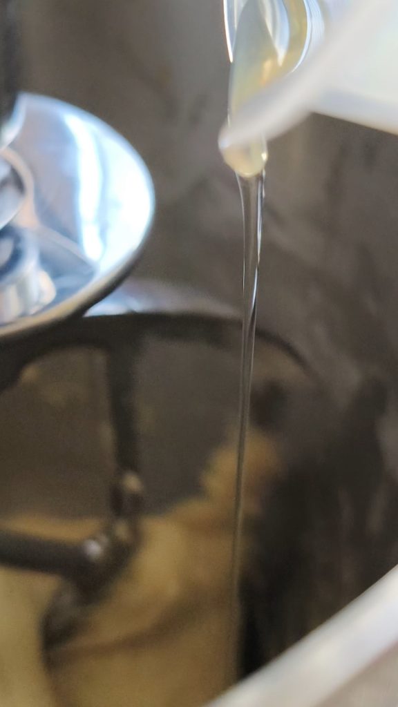 • Mélanger continuellement pour éviter les grumeaux et vérifier avec le thermomètre que la température atteint 65°C. La consistance finale est semblable à une crème pâtissière un peu liquide. Éteindre et couvrir. (voir ci-dessous comment faire si vous n’avez pas de thermomètre)