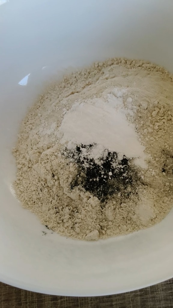 Verser dans le bol les poudres tamisées, la spiruline et la levure ; mélanger et mettre de côté.