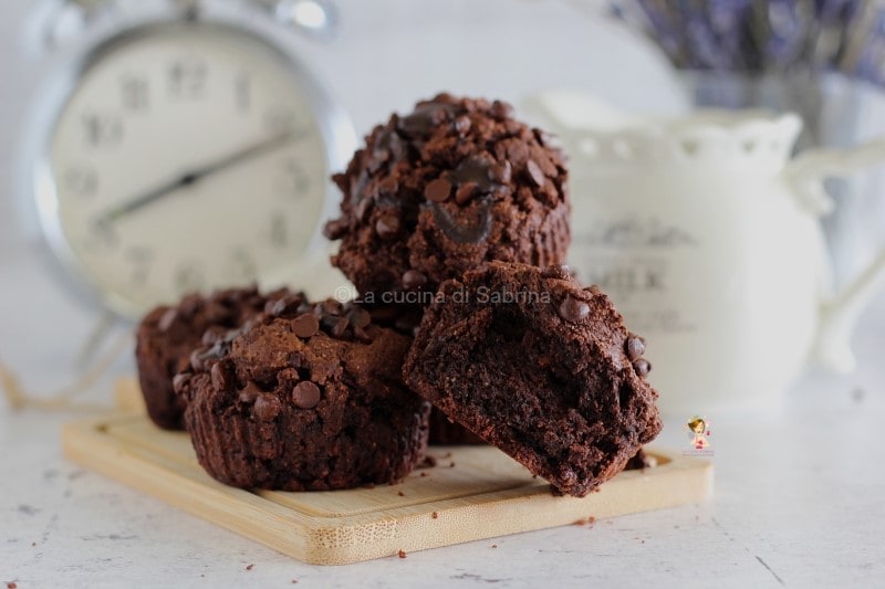 Sans sucres ajoutés, à part ceux présents dans les fruits, ces muffins sont aussi sans œufs et gluten et donc parfaits aussi pour ceux qui souffrent de diverses intolérances ou allergies, en veillant toutefois à remplacer également la levure chimique et le cacao par des versions sans gluten.