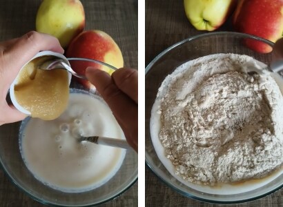 – Ajoutez la mousse/pulpe de pomme et enfin les poudres.