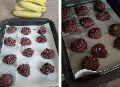 Pour faire cette recette, il faut des bananes qui ne doivent pas nécessairement être trop mûres, mais qui nous donnent la douceur nécessaire et nous permettent d’éviter l’ajout de divers édulcorants, de la farine complète et des pépites de chocolat indispensables qui, avec le cacao et la cannelle, complètent la recette des petits biscuits intégrés moelleux au chocolat.