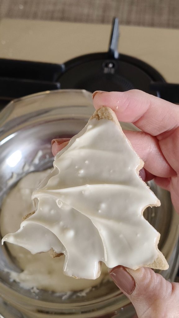 • Déplacez les petits sapins glacés sur le tapis ou le papier cuisson à mesure que vous les glacez.