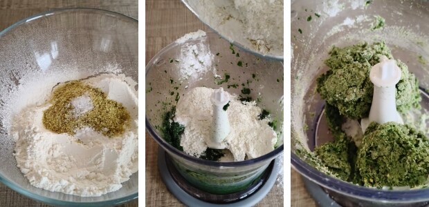 – Mixer les épinards tièdes avec l’eau et l’huile et mettre de côté.