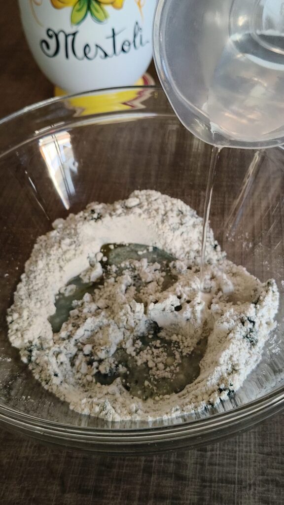 Verser l’eau en filet (quelques ml de plus peuvent être nécessaires).