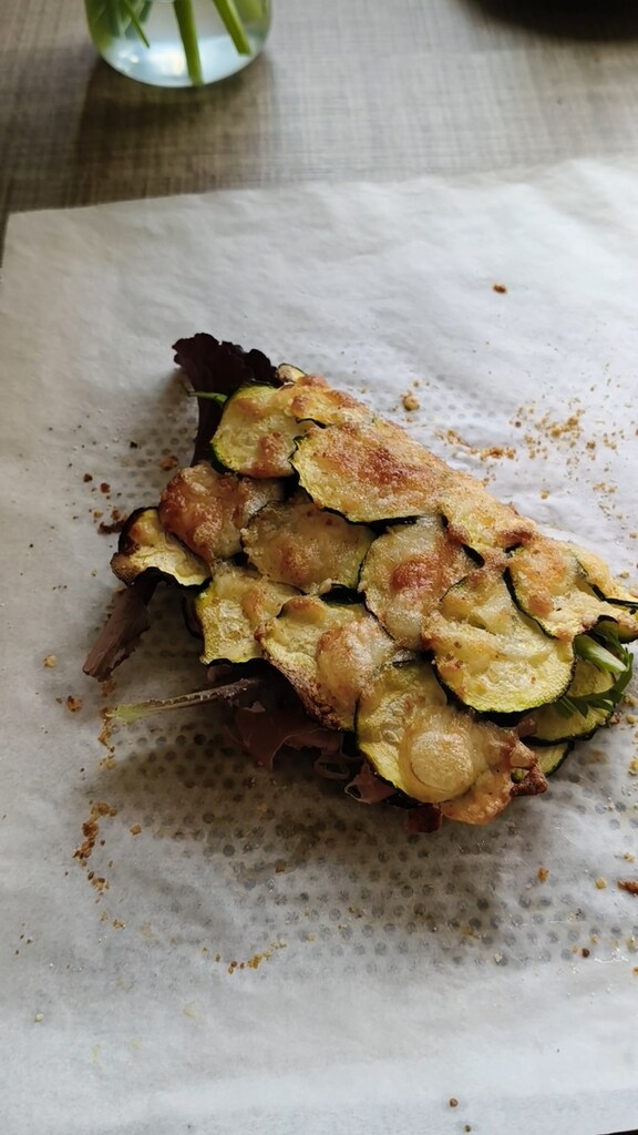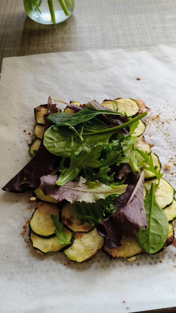 Le procédé est facile et, à la place des courgettes, on peut aussi utiliser des pommes de terre coupées en fines tranches.