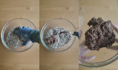 – Verser les gaufrettes dans un grand bol et les émietter à la main ; ajouter la pâte à tartiner et mélanger les ingrédients ensemble.