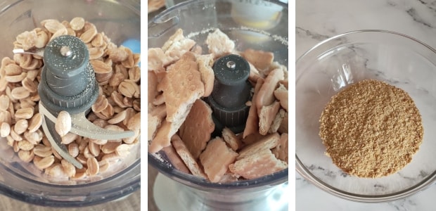 – Mettre ensemble dans le mixeur les cacahuètes, les biscuits et mixer.