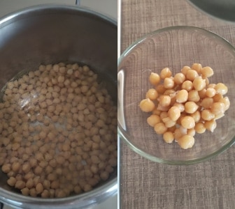 – La veille, faire tremper les pois chiches secs dans de l’eau froide non calcaire ou minérale (sinon ils restent durs).