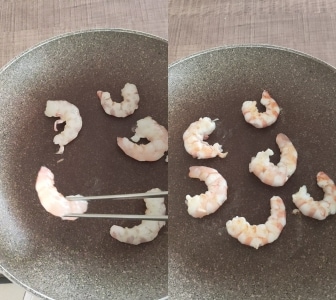 – Chauffer la poêle et saisir les crevettes, les retournant après 2 minutes.