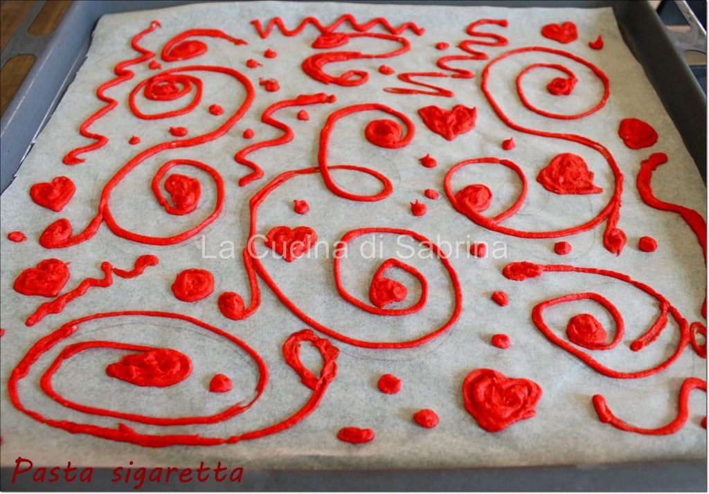 – Étaler la pâte sur la pâte cigarette, en essayant de bien niveler et cuire au four pendant 4-5 minutes