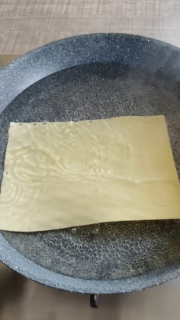 Blanchissez les feuilles de lasagne dans de l’eau bouillante salée pendant 2 minutes.