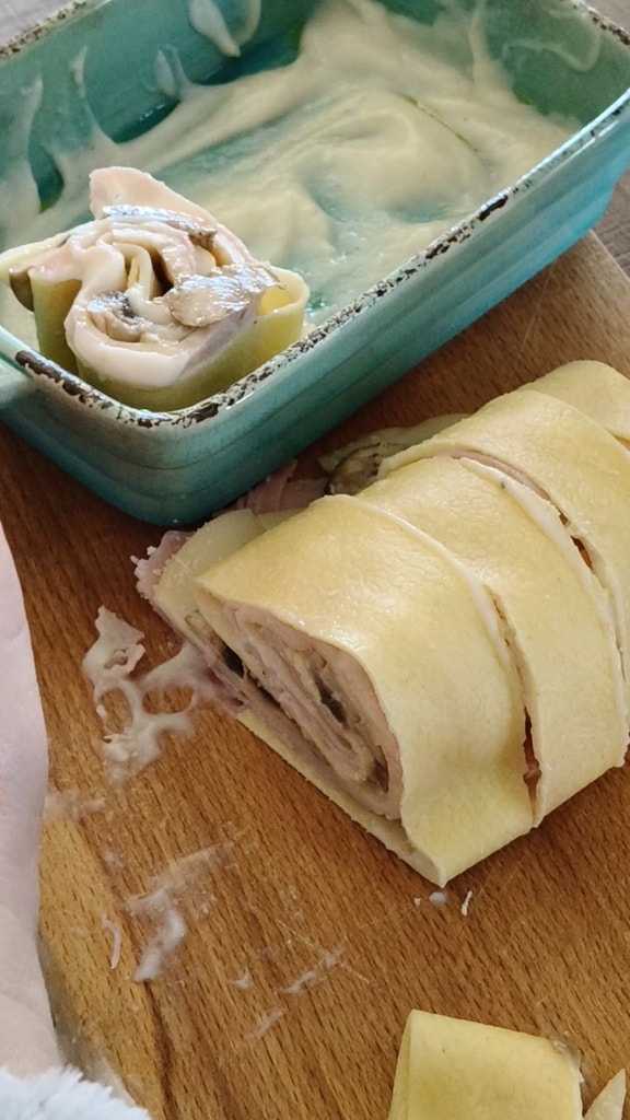 Les seules étapes importantes pour la réussite du plat sont deux : faire blanchir les feuilles de lasagne pendant quelques minutes pour pouvoir les rouler sans risque de casse, et préparer une excellente béchamel veloutée que l’on peut faire la veille.