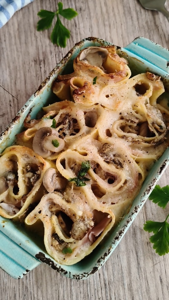 Si vous cherchez une recette simple, savoureuse et parfaite même pour les sorties printanières, les roulés de lasagne farcis aux champignons et au jambon sont ce qu’il vous faut ! Un plat qui associe la tradition de la lasagne avec une touche créative, car au lieu de préparer la lasagne en couches, ici, comme nous le verrons, les lasagnes se transforment en délicieux roulés crémeux et savoureux.