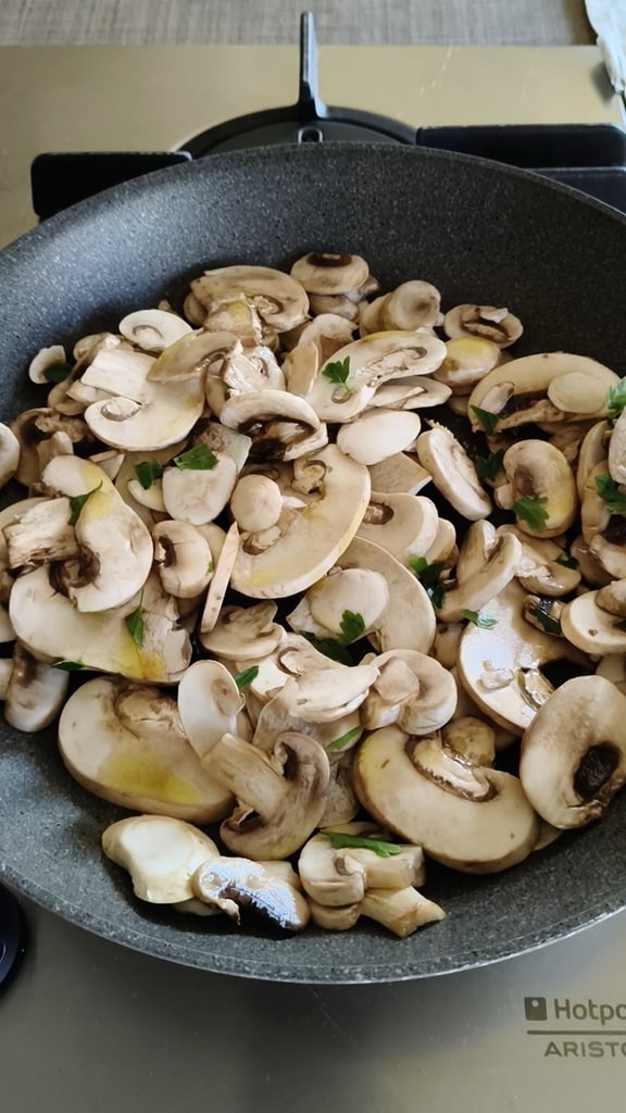 Lavez et tranchez les champignons, puis faites-les sauter dans une poêle avec de l’ail, de l’huile et du persil. Salez à la fin et assaisonnez de poivre selon votre goût.