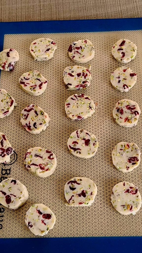 Ils semblent sortis d’une pâtisserie les sablés sans œufs, pistache et fruits rouges.