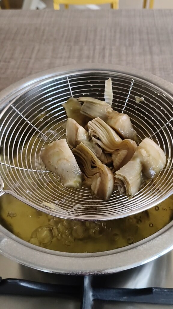 On disait qu’elle est facile à préparer, surtout si, comme moi, vous utilisez des artichauts surgelés en quartiers, car vous n’aurez qu’à les faire bouillir quelques minutes dans de l’eau bouillante. Si vous préférez utiliser des artichauts frais, il faudra quelques minutes de plus pour les nettoyer.