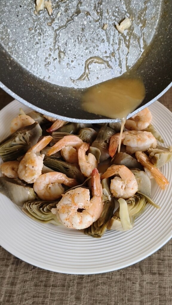 Les crevettes, quant à elles, doivent être nettoyées et sautées à la poêle pendant quelques minutes, mais je vous garantis que le résultat final de la salade d’artichauts et crevettes ne vous décevra pas, tant en termes de goût que de simplicité.