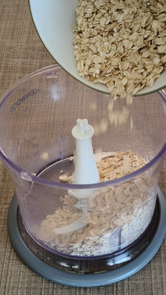 Mettez les flocons d’avoine dans le verre du hachoir et réduisez-les en poudre.