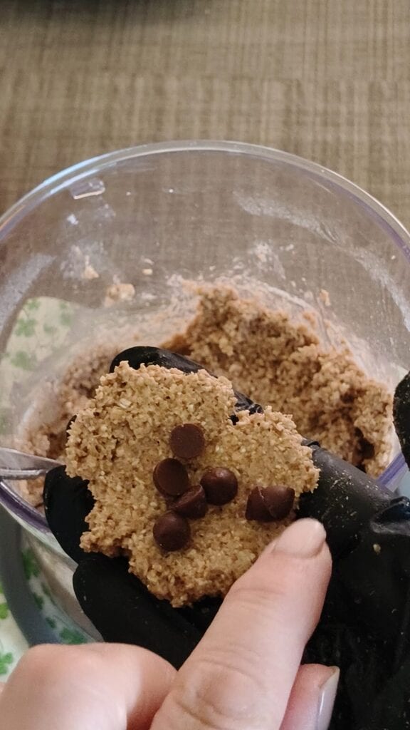 Prélevez un peu de pâte et insérez à l’intérieur 4/5 pépites de chocolat. Refermez les boules. Procédez de cette manière jusqu’à épuisement des ingrédients.