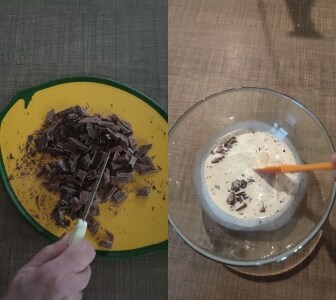 – La procédure est toujours la même : Hachez finement le chocolat; portez la crème à légère ébullition et versez-la sur le chocolat en mélangeant du centre vers l’extérieur.