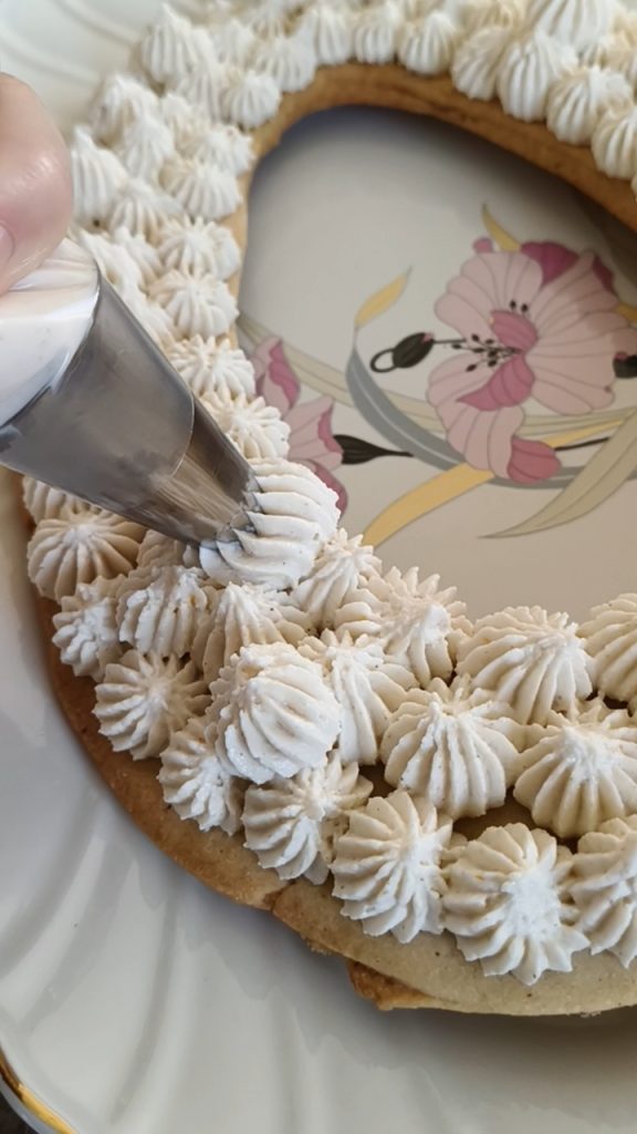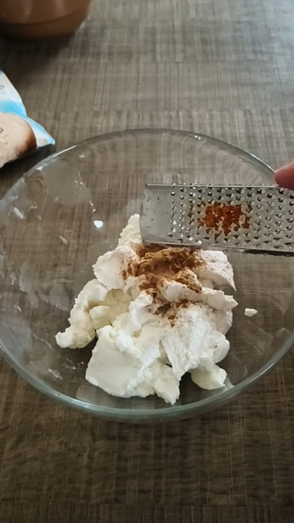 Ajoutez la cannelle, l’eau de fleur d’oranger et le zeste d’orange et mélangez bien. Passez au frais quelques heures ou, mieux encore, toute la nuit ; juste avant de l’utiliser, ajoutez le sucre glace. Fouettez pendant quelques minutes avec les fouets électriques et remplissez une poche à douille jetable munie d’une douille étoile.