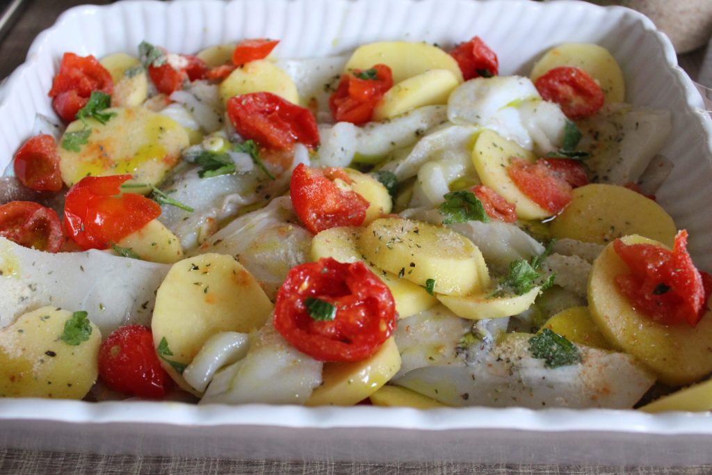 “Tijella” seiches et pommes de terre-recette des Pouilles