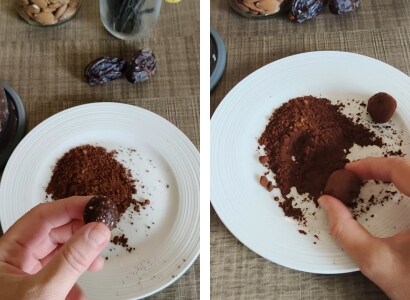 – La taille des truffes amandes et dattes dépend de vous; si vous avez besoin de les faire plus grandes ou en plus grand nombre, doublez les doses.