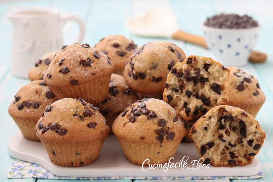 Les muffins aux pépites de chocolat sont parmi mes douceurs préférées pour le petit déjeuner. En réalité, j’étais convaincue d’avoir publié la recette sur le blog, mais je me trompais, j’avais seulement mon cher gâteau aux pépites de chocolat, alors, la dernière fois que je les ai préparés, j’ai fait la vidéo (que vous trouverez toujours sur mes profils Instagram et TikTok), je les ai photographiés et les voilà ici. Les muffins aux pépites de chocolat sont moelleux, très tendres et sans beurre, avec une petite coupole parfaite et riches en pépites de chocolat noir qui ne coulent pas à la cuisson, grâce à la consistance parfaite de la pâte. Ces petits gâteaux sont idéaux non seulement pour le petit déjeuner mais aussi pour le goûter, une douceur bonne et simple qui plaît aux grands et aux petits!
