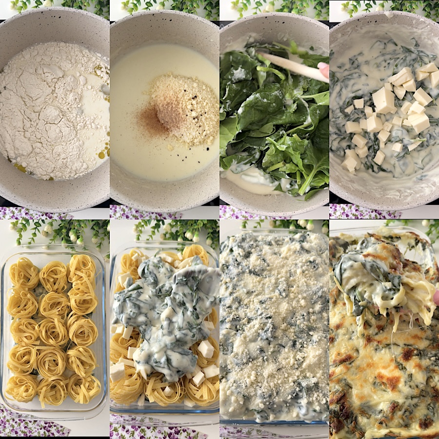 Les nids de tagliatelles aux épinards sont un plat principal facile, très rapide à préparer et vraiment délicieux, une pâte au four végétarienne simple et savoureuse. J’ai pensé à ce plat comme premier pour Pâques (ou Lundi de Pâques), ils se préparent en peu de temps et vous pouvez même les faire à l’avance la veille. Savoureux, filants et crémeux, les nids de tagliatelles aux épinards sont vraiment délicieux, il suffit de préparer la béchamel, de l’assaisonner, de la mettre sur les pâtes et hop au four, sans même blanchir les épinards avant, ça cuit tout seul!