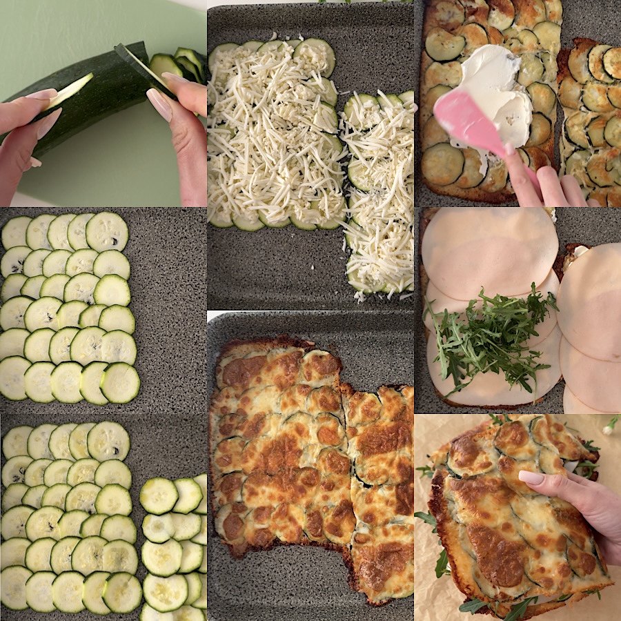 Les sandwichs de courgettes sont une recette vraiment incroyable, les « sandwichs » de légumes les plus viraux du web. Après les sandwichs de pommes de terre et ceux de potiron, je ne pouvais pas ne pas les faire aussi avec les courgettes, qui sont parmi mes légumes préférés absolus. Rapides, astucieux, super savoureux et aussi pas trop caloriques, ces sandwichs de courgettes sont sûrs d’être littéralement pris d’assaut et plairont énormément même aux plus petits (Matilde les a adorés), vous pouvez les garnir avec la farce de votre choix, j’ai mis du fromage à tartiner, du blanc de dinde et de la roquette, et ils sont parfaits pour un repas rapide et nutritif (sans gluten, aussi fit/protéiné ou végétarien si vous n’utilisez pas de charcuterie, il n’y a pas de glucides), comme repas de secours pour le dîner/déjeuner ou même pour le goûter, ils sont moelleux et avec une garniture crémeuse, vous pouvez aussi les cuire dans une friteuse à air, ils sont vraiment fabuleux!