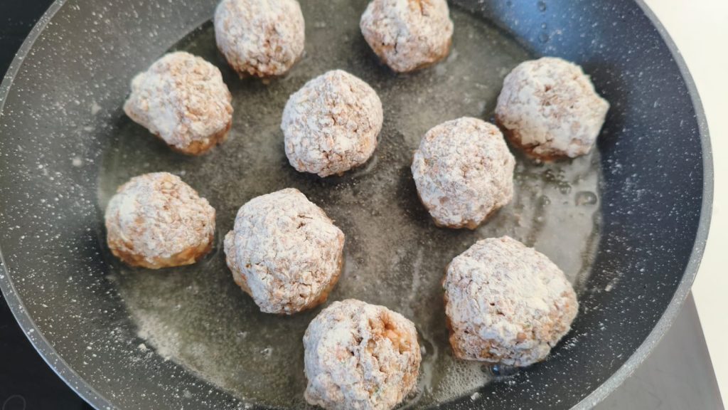 Fais chauffer un filet d’huile dans une poêle et fais dorer les boulettes 3-4 minutes, en les retournant délicatement jusqu’à ce qu’elles soient bien dorées.