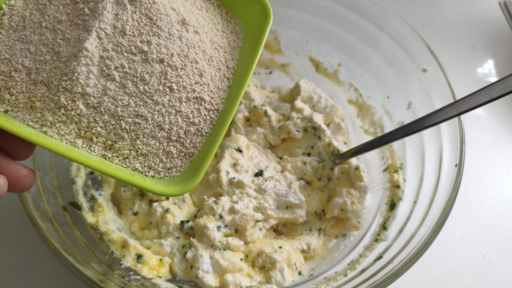 Ajouter la chapelure et amalgamer pour créer une pâte homogène.