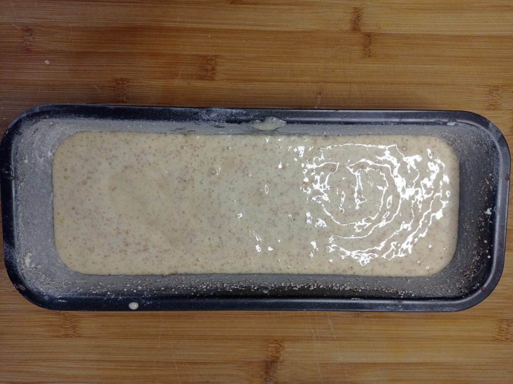 Beurrez et farinez un moule et versez notre mélange à l’intérieur.