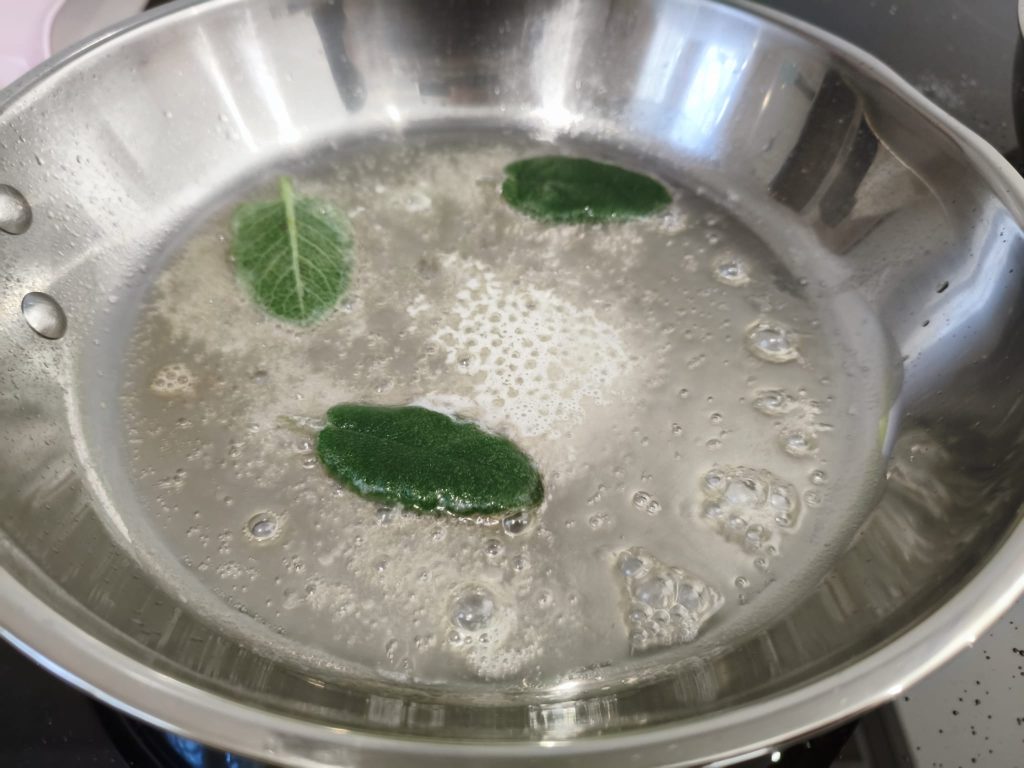 • Dans une grande poêle, faites fondre le beurre avec la sauge.
