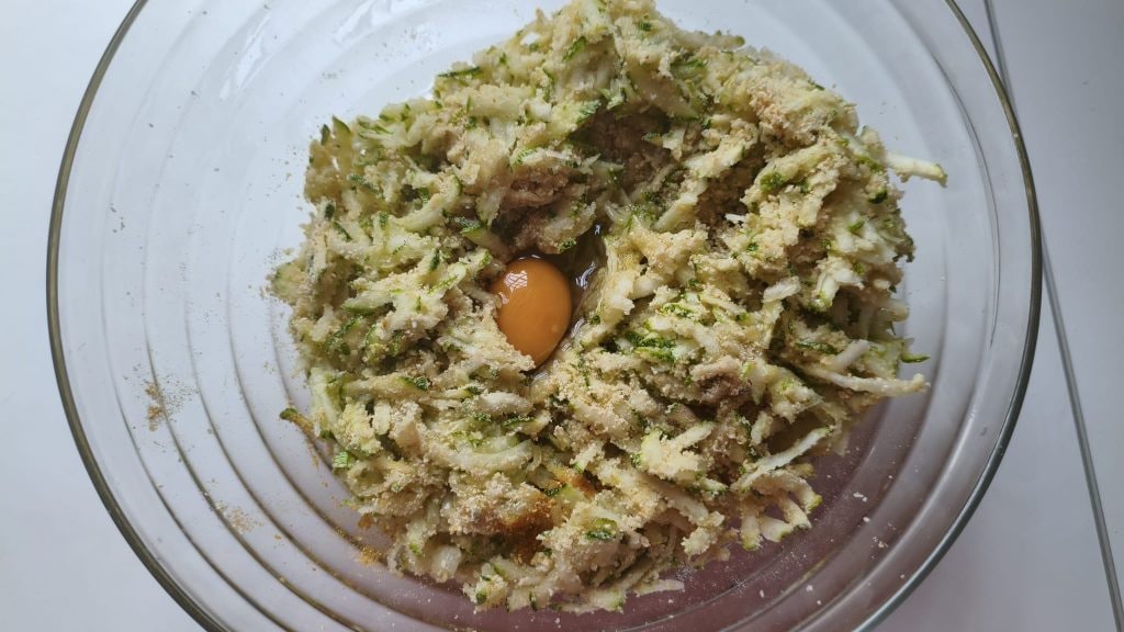 Cette recette est vraiment simple : on râpe les courgettes crues, on ajoute de la chapelure, un peu de parmesan, un œuf et, pour donner une touche épicée et saine, j’ajoute également une pincée de curcuma. On mélange le tout jusqu’à obtenir un mélange bien homogène, on forme de petites côtelettes… et voilà !