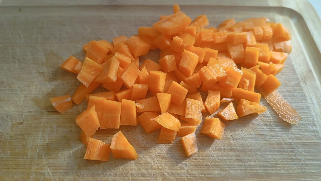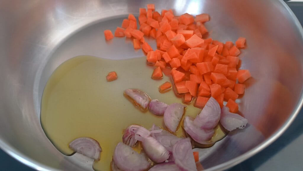 Couper l’échalote et les carottes en dés