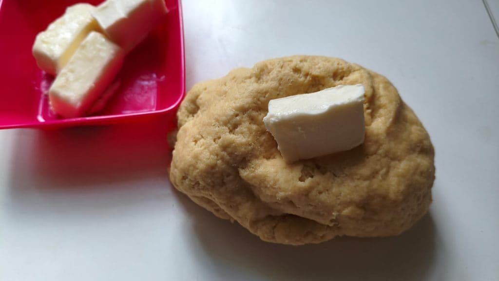 • À ce stade, vous pouvez ajouter le beurre petit à petit en continuant de pétrir.