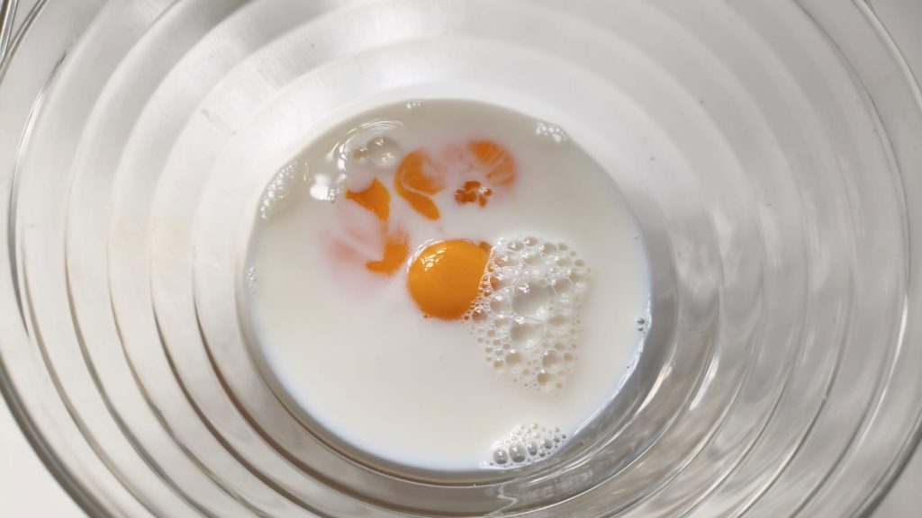 • Préparez la pâte pour le gâteau Angélique en mélangeant le lait et les œufs dans un bol. Après avoir mélangé les liquides, ajoutez la farine et le sucre et commencez à pétrir jusqu’à obtenir une pâte rugueuse mais homogène.